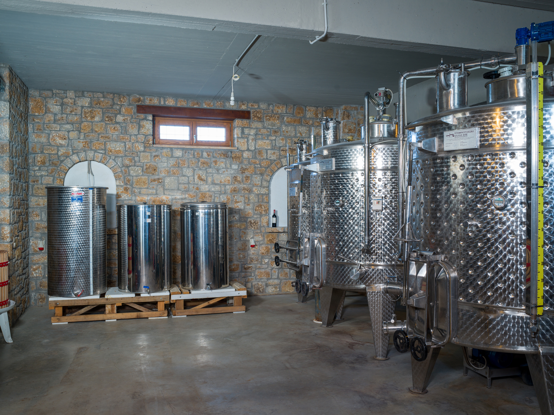 Είναι ένα παραδοσιακό πετρόχτιστο οινοποιείο, όπως ταιριάζει στους οίνους ποιότητας και αντάξιο του prestige των οίνων της επιχείρησης. Οι πέτρινοι τοίχοι, πάχους 55cm τουλάχιστον, διαμορφώνουν ιδανικές συνθήκες θερμοκρασίας και υγρασίας στο κελάρι ωρίμανσης και παλαίωσης των οίνων, καθ’ όλο το έτος. Αυτό σημαίνει χαμηλή κατανάλωση ενέργειας σε όλα τα στάδια παραγωγής - συντήρησης.